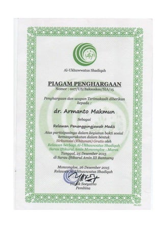 Piagam Penghargaan Relawan Penanggungjawab Medis