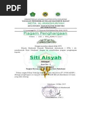 Piagam Penghargaan Lomba Tpq Tpa Al Ma Arif Al Qudsiyyah Facebook